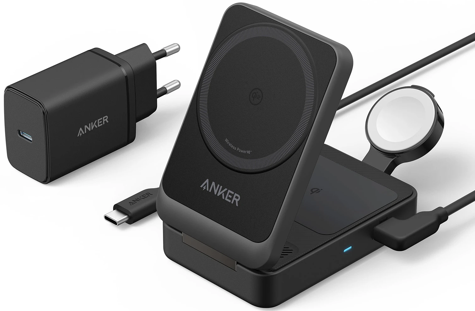 Schneller laden. Smart leben.: Die neue Ultra-Schnellladung von Anker in Kombination mit Qi2-Technologie gewährleistet, dass diese zusammenklappbare 3-in-1-Ladestation deine Essentials schneller auflädt, wenn du es dringend brauchst.