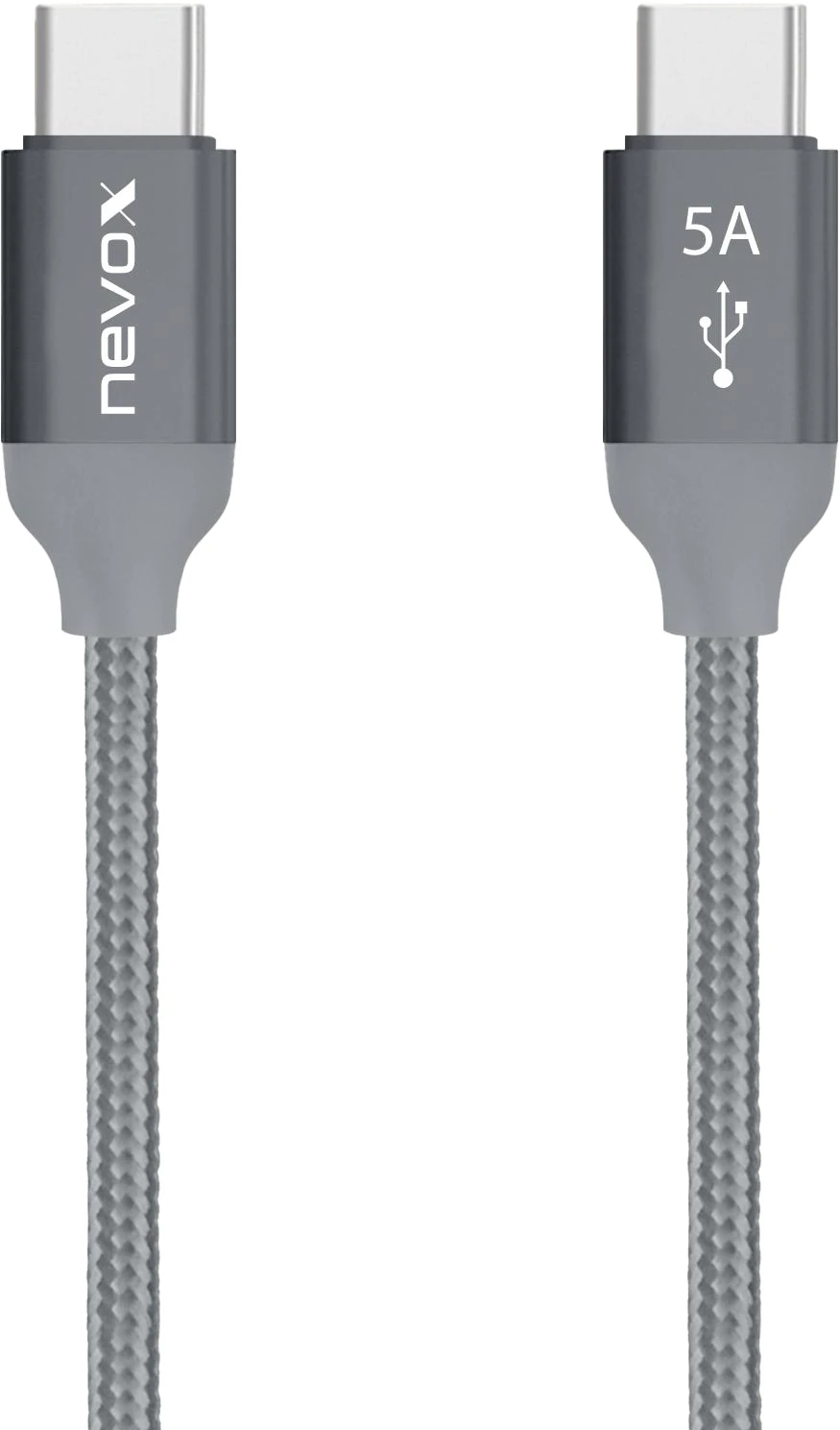 Nevox 2 m USB-C zu USB-C 2,0 Kabel 20V/5A (100W) Emark IC Silber Grau