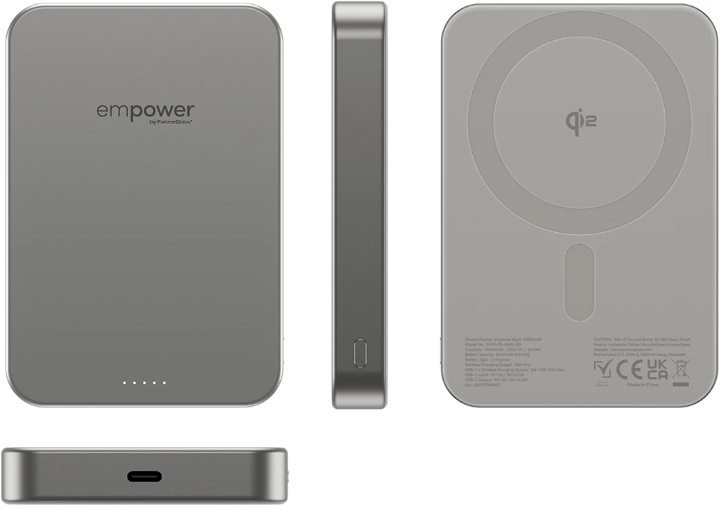 Hier kommt die empower bank 10000 mAh von empower by PanzerGlass – wo starke Leistung auf zuverlässiges Design trifft. Mit nur 14,3 mm ist sie superdünn, aber trotzdem tough. Durchdachtes Design, hochwertige Materialien, ausgiebig getestet – diese Powerbank ist dein Alltagsheld.